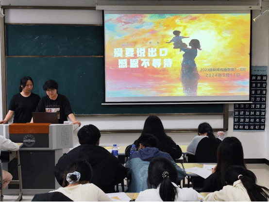 “同學們,猜一猜明天是什么節(jié)日啊?”“母親節(jié)!”5月11日,新聞傳播學類專業2023(7)、(8)班在K202教室開展以“愛要說出口,感恩不等待”為主題的團建活動。活動開始前,活動負責人、新聞傳播學類專業2023(7)、(8)班的班長楊雨霏、朱研溪提前為每位同學準備好信紙和信封。朱研溪說:“我們希望通過寫信這種傳統而深情的溝通方式,讓同學們勇敢表達自己的心聲,將對母親的愛訴說于筆尖。”學生們觀看一段關于母愛的感人短片后,...
